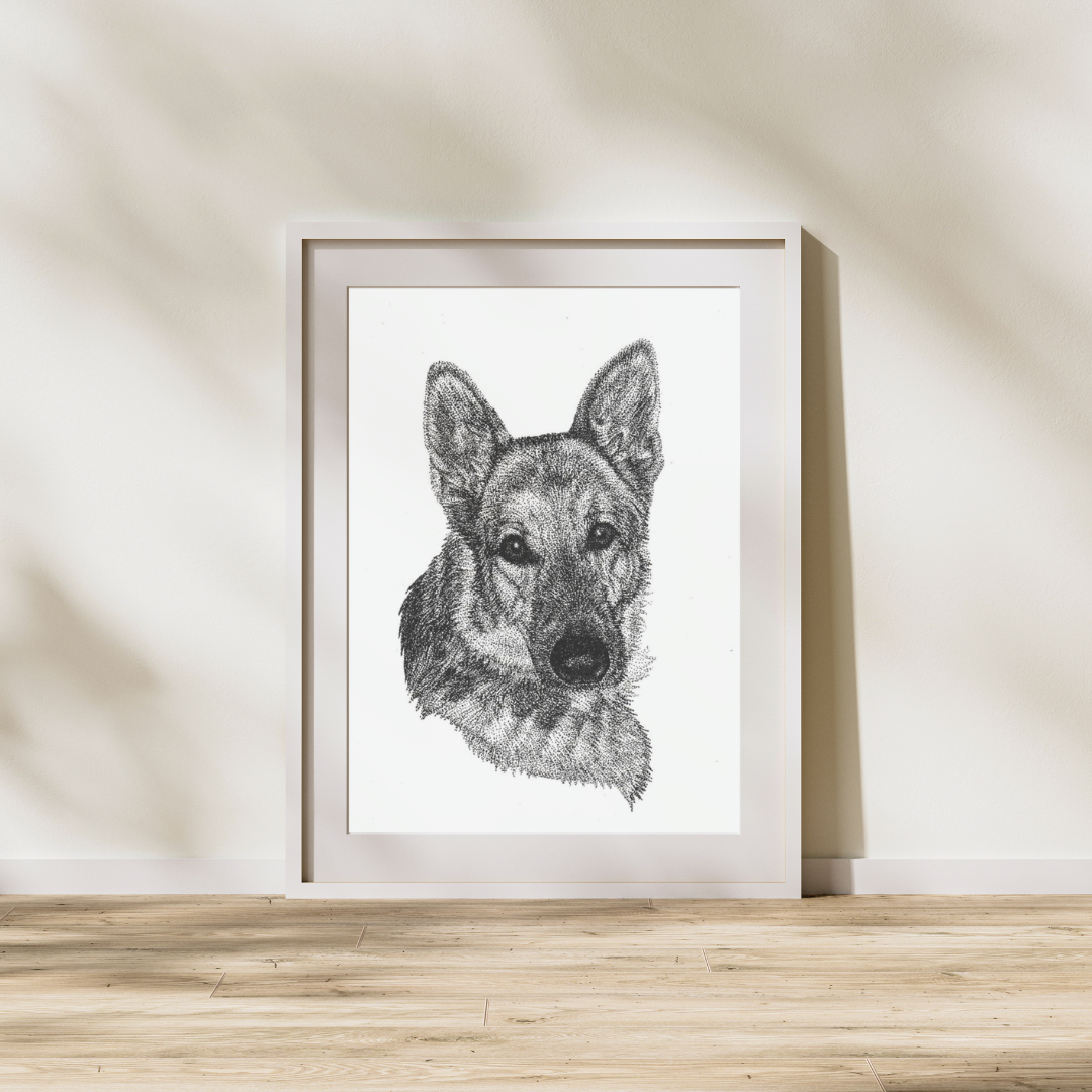 Handsome German Shepherd, drawn on October 18, 2023