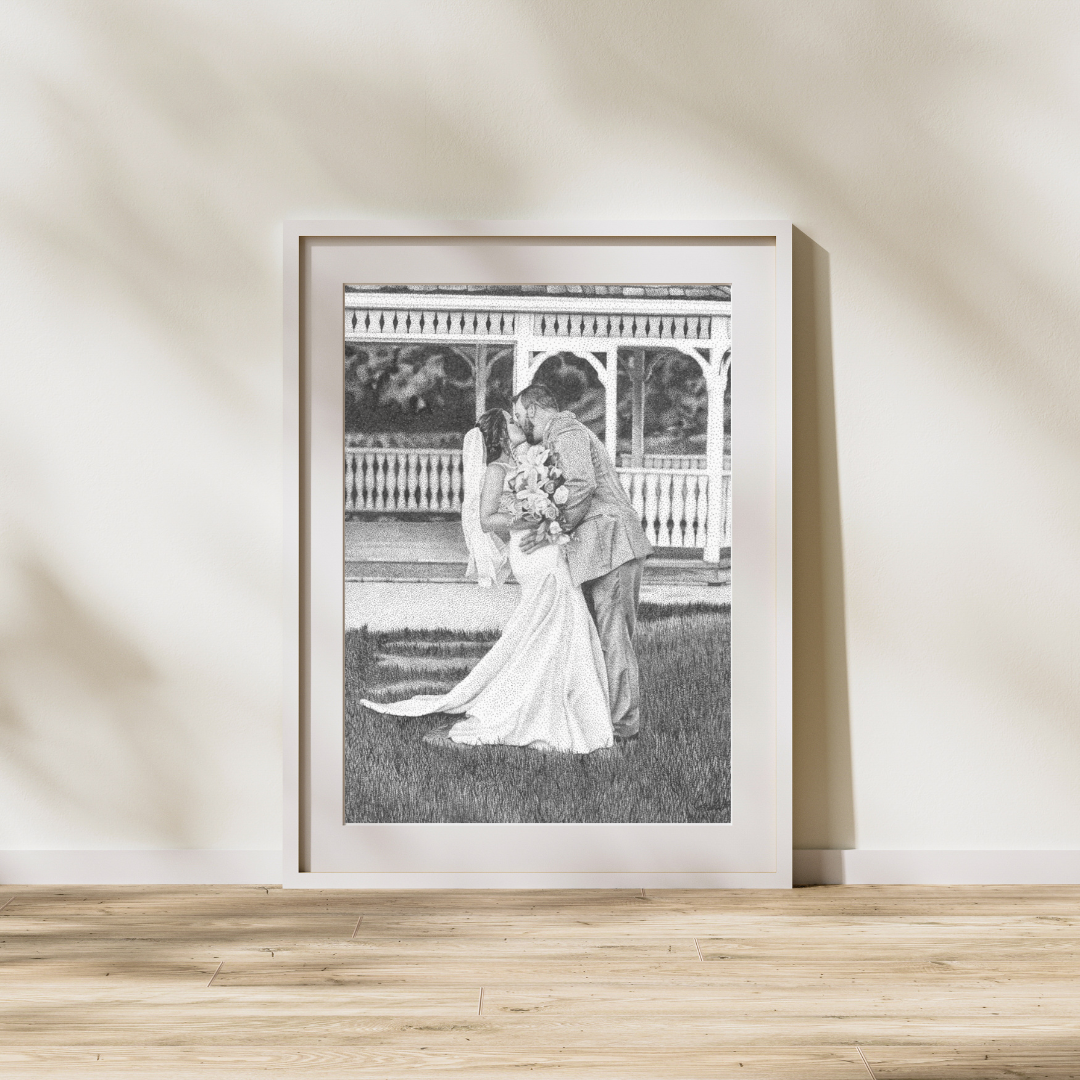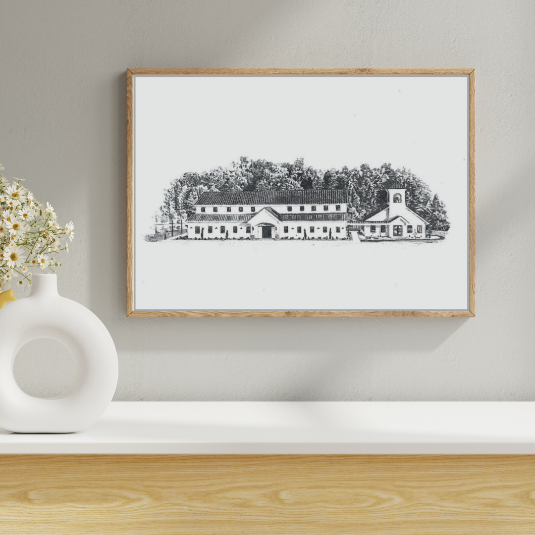 Pencil drawing of a wedding venue in Missouri, completed in July 2024.