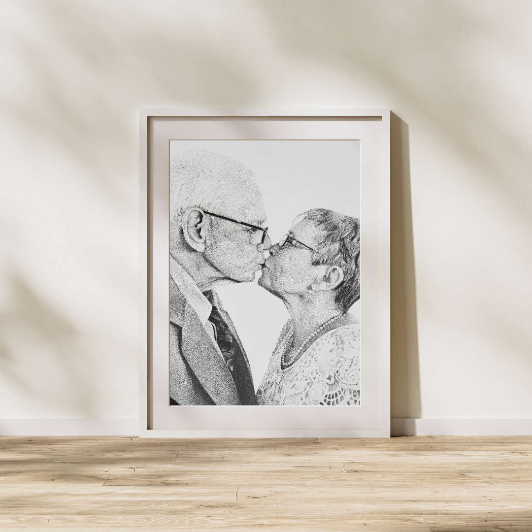 A sweet photo of a couple on an anniversary, completed on May 5, 2022.